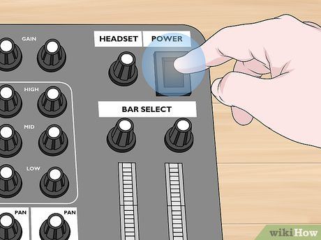 Bật máy trộn bằng công tắc nguồn. Công tắc nguồn thường ở phía sau hoặc phía trên bên phải của máy trộn. Kiểm tra xem tất cả các nút âm lượng và fader có đang được vặn nhỏ xuống trước khi bật công tắc. Bạn sẽ thấy đèn bật sáng ngay khi nguồn được kết nối.