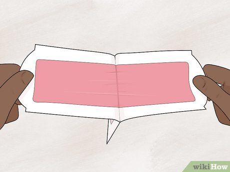 Mài miếng sáp giữa hai tay của bạn trong 10 giây. Lấy một miếng sáp ra khỏi hộp, nhưng đừng bóc bỏ bao bì. Mài miếng sáp giữa hai tay của bạn để làm ấm nó lên và chuẩn bị cho việc bám vào tóc của bạn.