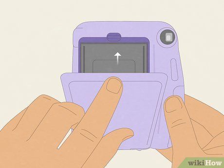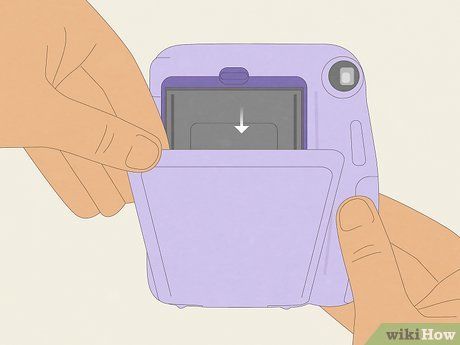 Mở nắp sau của máy ảnh Instax. Sử dụng tab ở phía sau để nhẹ nhàng kéo bìa ra.