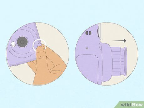 Bật máy ảnh Instax lên. Nhấn nút nguồn ở bên cạnh ống kính để bật máy. Ống kính nên được kéo dài hoàn toàn khi máy ảnh được bật.