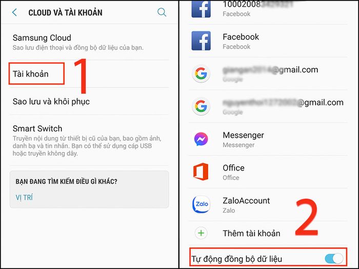 Đi vào Cài đặt > Chọn Cloud và tài khoản > Nhấn vào Tài Khoản > Tắt chế độ Tự động đồng bộ dữ liệu.