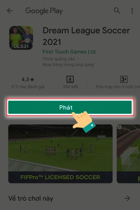 Vào Google Chrome > Nhập từ khóa Dream League Soccer 2021 vào thanh tìm kiếm > Chọn game trên Google Play hiển thị > Nhấn Cài đặt > Chờ quá trình tải xuống > Nhấn Phát để mở và trải nghiệm game.