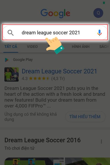 Nhập Dream League Soccer 2021 vào thanh tìm kiếm