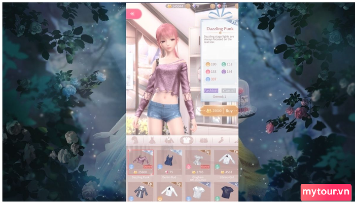 Bước 1: Trong Shining Nikki, trước mỗi trận đấu thời trang, người chơi sẽ lựa chọn trang phục và phụ kiện cho Nikki từ nhiều loại khác nhau.