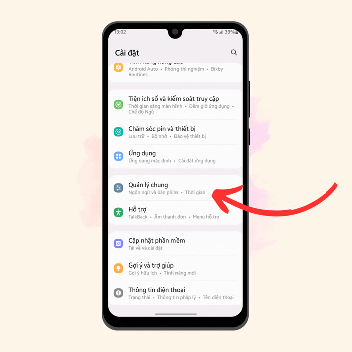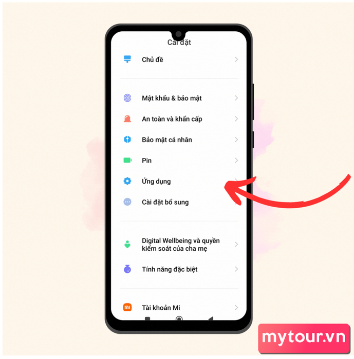 Cài đặttrên điện thoại.