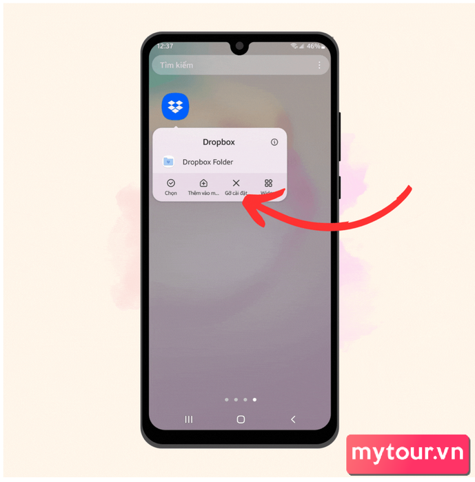 giữ ngón tay trên ứng dụng không sử dụngrồi chọn