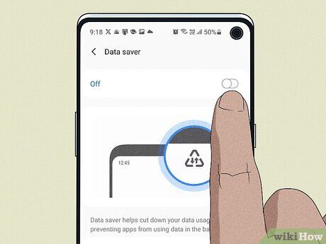 - Samsung Galaxy: Vuốt xuống từ đầu màn hình và chạm vào biểu tượng bánh răng. Đi tới Kết Nối > Sử Dụng Dữ Liệu > Tiết Kiệm Dữ Liệu và tắt chế độ Tiết Kiệm Dữ Liệu.