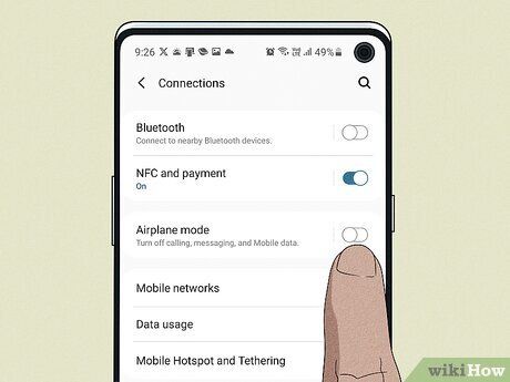 Đảm bảo Chế độ máy bay đã tắt. Nếu chế độ máy bay đã bật, bạn không thể truy cập dữ liệu di động hoặc Wi-Fi. Nếu chế độ máy bay đang bật, bạn sẽ thấy một biểu tượng giống như một chiếc máy bay ở đầu màn hình của bạn.