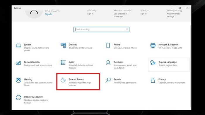 Bước 2: Tiếp theo, chọn Thuận tiện trong truy cập.