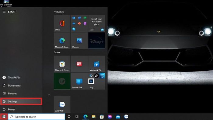 Bước 1: Truy cập vào biểu tượng Windows ở góc trái dưới của màn hình, sau đó chọn Settings.