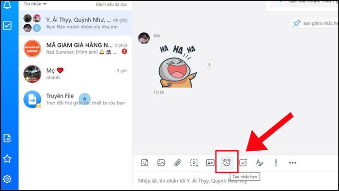 Bước 1: Trong cuộc trò chuyện nhóm, nhấn vào biểu tượng đồng hồ để Tạo nhắc nhở hẹn.