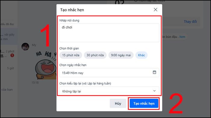 Bước 2: Nhập thông tin của lịch nhắc hẹn > Chọn Tạo nhắc nhở hẹn.