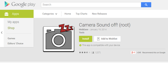 Truy cập Google Play, tìm và cài đặt ứng dụng Camera Sound off! (root) lên điện thoại.