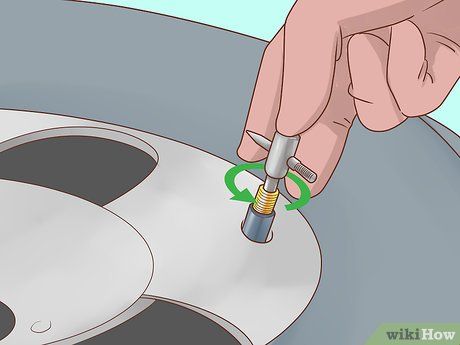 Mở van khí với công cụ tháo van. Tìm van khí, mà sẽ trông giống như một cái chân cẩu nhỏ nhô ra từ đầu trước của mâm. Nó có thể là màu đen hoặc kim loại. Xoay nắp ngược chiều kim đồng hồ để tháo nó ra, sau đó đặt một bộ gỡ van vào van. Xoay công cụ ngược chiều kim đồng hồ để bật ra van.