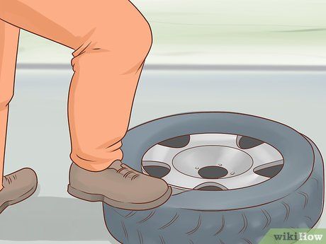 Chân kẹp cạnh lốp xuống bằng chân của bạn. Để ngăn lốp trượt, đặt nó trên một mảnh thảm, một cái lốp khác hoặc một vật tương tự. Bắt đầu với phần trước của mâm hướng xuống. Đặt chân mạnh lên phần cao su của lốp. Đứng hoặc quỳ trên đó là an toàn và sẽ giúp giữ bánh xe ở chỗ.