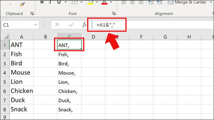 Bí quyết thêm dấu phẩy vào cuối văn bản trong Excel