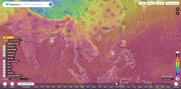 Hiện nay có hai trang web hỗ trợ theo dõi thông tin về cơn bão là Ventusky và Windy, đặc biệt cả hai trang đều cung cấp ứng dụng trên cả điện thoại iPhone và Android.