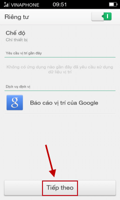 4/ Chọn cài đặt riêng tư -> Tiếp theo
