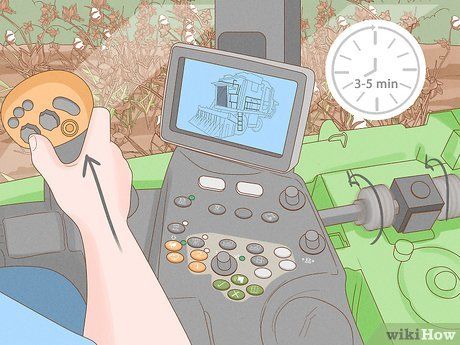 Điều chỉnh các thiết lập ban đầu trên máy hái bông để khởi động máy. Trước tiên, chọn cài đặt RPM trên mô-đun điều khiển tay lái. Hầu hết các máy có 3 tùy chọn, nhanh, bình thường và chậm. Chọn tốc độ chậm để bắt đầu, sau đó điều chỉnh tốc độ của bạn theo ý muốn. Sau đó, nhấn xuống công tắc sàn bằng chân trong khoảng 5 phút.