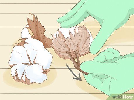 Tách bông từ quả bông nếu còn bất kỳ phần cây nào còn lại. Lý tưởng, quả bông sẽ ở lại trên cây khi bạn lấy bông ra. Nếu quả bông đi kèm với bông, chỉ cần lấy nó bằng ngón tay.
