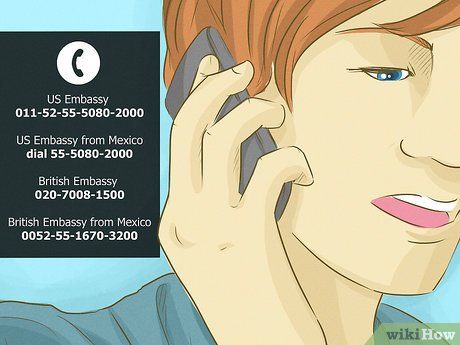 Liên lạc với đại sứ quán hoặc lãnh sự quán Mexico tại quốc gia của bạn. Nếu người bạn đang tìm kiếm là công dân Mexico, hãy gọi đến Đại sứ quán Mexico tại quốc gia của bạn để biết thông tin và thông báo về một người mất tích. Hãy bình tĩnh và nói chuyện rõ ràng và lịch sự, và hỏi xem bạn có thể làm gì để giúp tìm kiếm người đó.