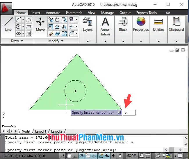 Lưu ý: Nếu hình bên trong là hình đa giác (tam giác, vuông, chữ nhật…), hãy nhập lệnh a => Enter để thêm hình vẽ cần loại bỏ.