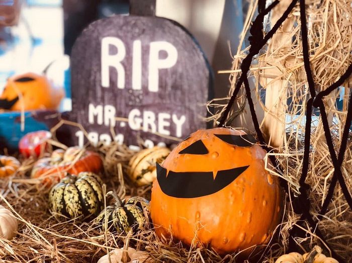 Quả bí ngô là một biểu tượng phổ biến của Halloween, nên việc trang trí bí ngô Halloween rất phù hợp. Bạn có thể tạo hình mặt quỷ lên quả bí ngô, sau đó đặt bên trong đèn led hoặc nến để tạo iluminations kỳ quái.