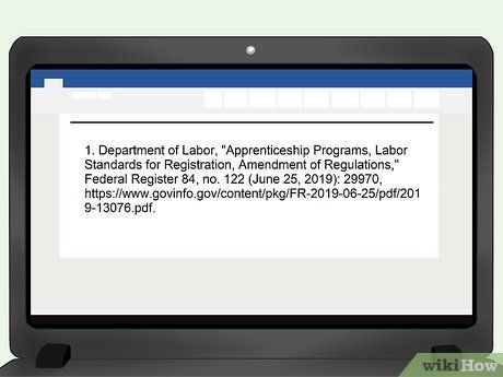 - Ví dụ: Bộ Lao động. 'Chương trình Học việc, Tiêu chuẩn Lao động cho Đăng ký, Sửa đổi Quy định.' Bộ Đăng ký Liên bang 84, số 122 (25 Tháng Sáu, 2019): 29970. https://www.govinfo.gov/content/pkg/FR-2019-06-25/pdf/2019-13076.pdf.