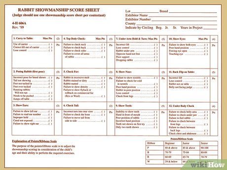 Xem xét quy trình đánh giá của cuộc thi. Cách thỏ của bạn sẽ được đánh giá phụ thuộc vào giống và cuộc thi bạn chọn. Nói chung, cuộc thi sẽ đánh giá cân nặng, chất lượng lông, đuôi và tai của mỗi con thỏ, màu mắt, dấu hiệu của bệnh tật, và nhiều hơn nữa. Ban giám khảo cũng có thể muốn một số giống cách trình bày trên bàn một cách cụ thể.