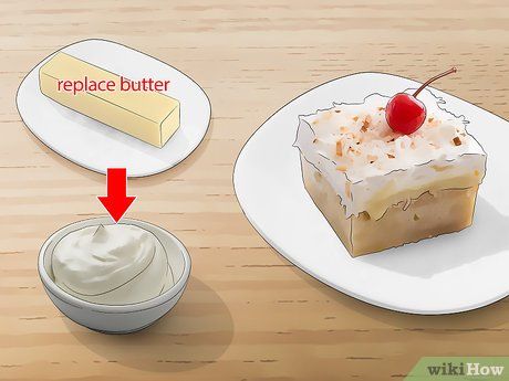 Sử dụng dầu dừa thay thế bơ khi nướng bánh. Dầu dừa có độ đặc tương tự như bơ và là một sự thay thế tuyệt vời cho bơ khi nướng bánh. Chỉ cần thay thế lượng dầu tương đương với lượng bơ mà công thức của bạn yêu cầu, không cần tính toán gì cả!