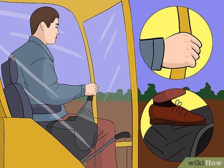 Bắt đầu điều khiển máy của bạn. Đảm bảo lưỡi phía trước và cần xẻng đều được nâng cao, và đẩy các cần điều khiển lái về phía trước. Nếu bạn không dự định thực hiện bất kỳ công việc san bằng nào với máy, sử dụng lưỡi dozer trong quá trình di chuyển, bạn có thể kiểm soát một que với mỗi tay. Các que này được đặt rất gần nhau để cả hai có thể nắm với một tay, sau đó quay để đẩy hoặc kéo que trong quá trình di chuyển, cho phép bạn để tay phải tự do để nâng hoặc hạ lưỡi dozer, để nó có thể được giữ ở độ cao phù hợp cho công việc bạn đang làm.