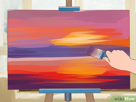 - Vẽ ẩm trên ẩm cũng quan trọng để làm cho các màu sắc hòa quyện vào nhau. Ví dụ, bạn có thể vẽ màu đỏ gần màu tím đậm hoặc màu xanh dương để tạo ấn tượng về hoàng hôn.