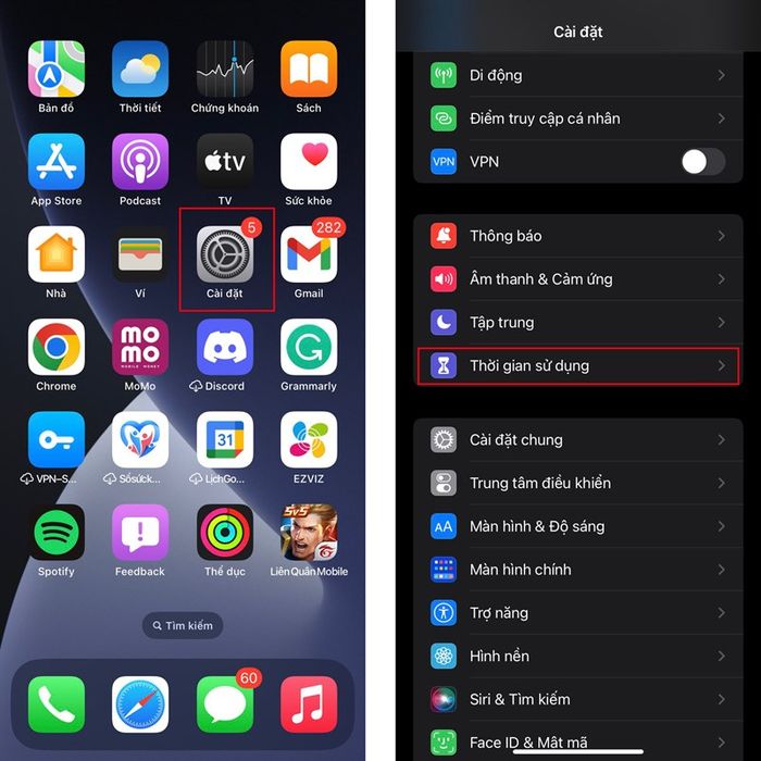 Bước 1: Mở ứng dụng Cài đặt > Chọn mục Thời gian sử dụng.