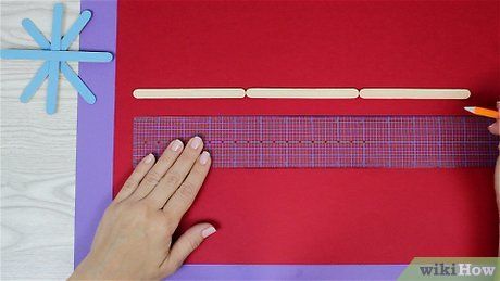 Đo đạc các thanh chống chéo cho thanh cấu trúc của bạn. Sử dụng bút chì và thước hoặc thước kẻ của bạn để đo ra các khoảng cách đều đặn nơi bạn sẽ hỗ trợ và kết nối các thanh cấu trúc của bạn bằng que kem chống chéo. Với mục đích của mô hình này, bạn sẽ sử dụng hai que kem đặt cạnh nhau theo mẫu W.