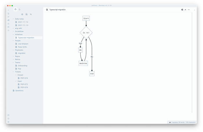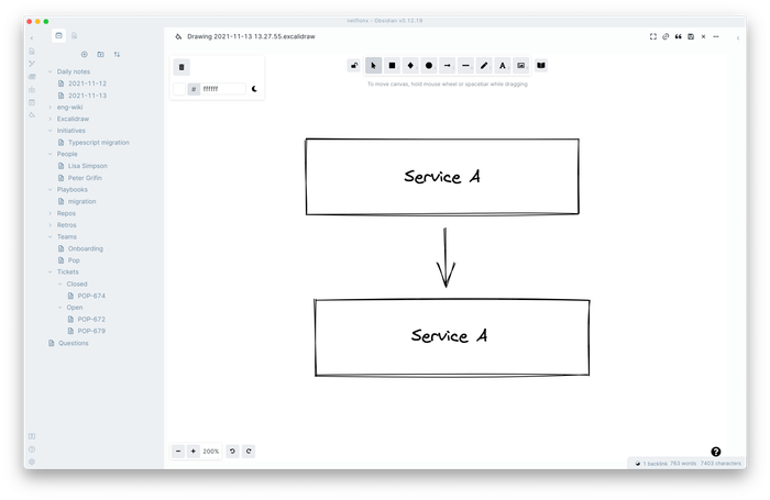 Có một plugin Excalidraw cho Obsidian (cảm ơn @zsviczian!). Tôi đã viết về tôi thích Excalidraw đến mức nào. Việc Obsidian có thể tích hợp một cách tinh tế với Excalidraw là tuyệt vời. Khi tôi nói về tinh tế, tôi có nghĩa là nó. Bạn có thể liên kết từ bên trong sơ đồ đến các trang trong cơ sở kiến thức của bạn. Bạn có thể nhúng. Nó tuyệt vời.
