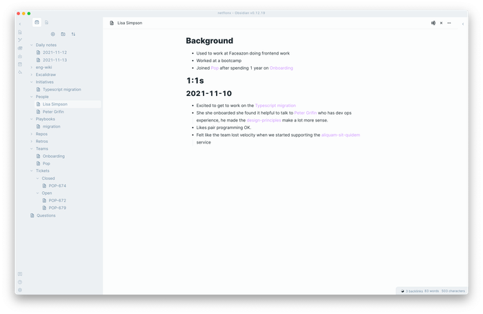 Tôi khuyến nghị sử dụng Obsidian. Nó về cơ bản là một trình soạn thảo markdown - nhưng nó là nhiều hơn thế. Nó là mã nguồn mở. Nó hoạt động dựa trên hệ thống tệp địa phương của bạn - không có vấn đề về quyền riêng tư dựa trên đám mây. Nó khuyến khích bạn tạo ra một mạng kiến thức dày đặc với nhiều liên kết và thẻ. Nó cũng có một bộ các plugin chính thức và plugin cộng đồng phong phú.