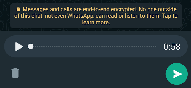 Đừng lo nữa: WhatsApp giờ đây cho phép bạn xem trước tin nhắn trước khi gửi. Trong khi hành vi mặc định vẫn là gửi tin nhắn ngay sau khi bạn nhả nút ghi, bạn ít nhất có thể yên tâm hơn một chút.