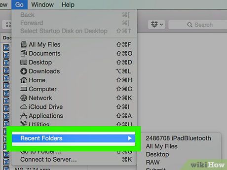Chọn Tệp Gần Đây. Nó nằm ở dưới cùng của menu Đi. Một cửa sổ hiện ra sát bên phải của Tệp Gần Đây với danh sách các thư mục bạn đã mở gần đây.