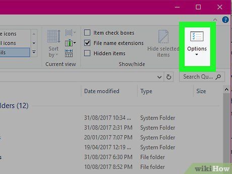 Click vào Xem. Đây là một tab ở phía trái trên cùng của cửa sổ File Explorer. Một menu sẽ xuất hiện dưới tab Xem.