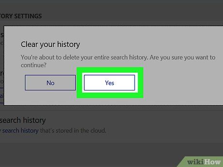 Nhấp vào Có khi được nhắc. Làm như vậy sẽ xóa hoàn toàn lịch sử tìm kiếm của Cortana, cả ở cục bộ và trực tuyến.
