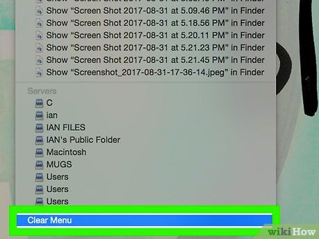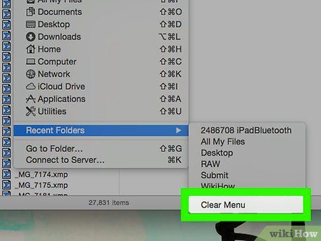 Nhấn vào Xóa Menu. Bạn sẽ thấy nút này ở dưới cùng của danh sách hiện ra. Điều này sẽ xóa danh sách các thư mục đã được truy cập gần đây.