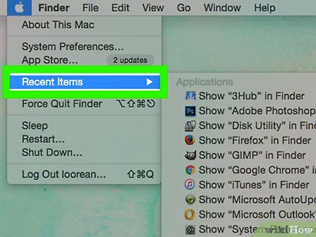 Chọn Các Mục Gần Đây. Nó gần phía trên của menu thả xuống Apple. Một menu bật ra với danh sách các ứng dụng và tệp mà bạn đã mở gần đây.