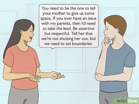 Hãy làm việc với vợ/chồng để đặt ra những ranh giới rõ ràng. Ngoài việc diễn đạt nhu cầu của bạn, hỏi vợ/chồng của bạn họ mường tượng vai trò của mẹ của họ trong cuộc sống của bạn và cách tốt nhất để giải quyết các vấn đề bạn đang gặp phải. Hãy làm việc với họ để tìm ra một điểm chung làm hai bạn hài lòng.