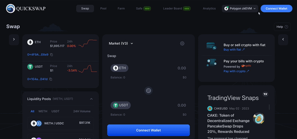 Bước 2: Lựa chọn mạng “Polygon zkEVM” và “Connect Wallet” để liên kết ví của bạn.