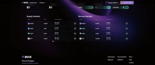Bước 3: Lựa chọn tài sản bạn muốn cho vay, chọn “Supply”, điền số lượng token và chọn lại “Supply” để xác nhận.