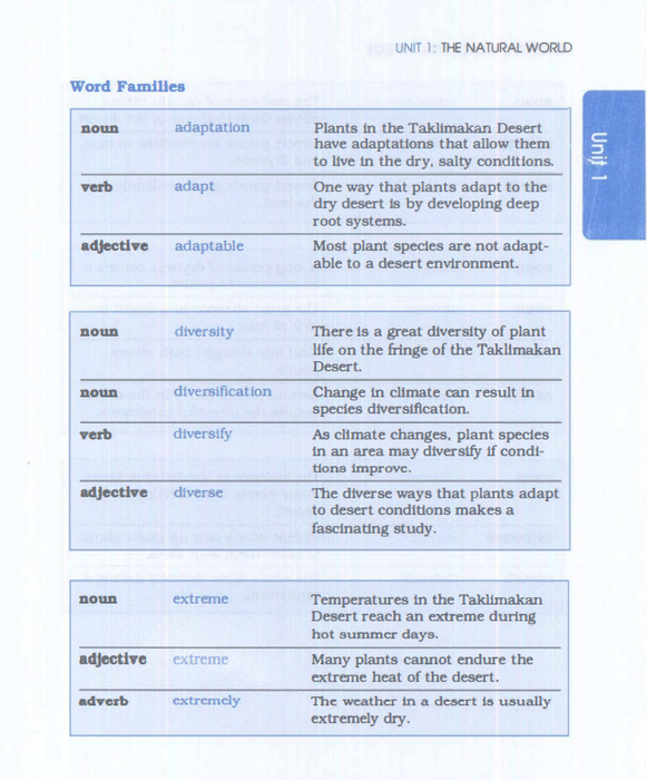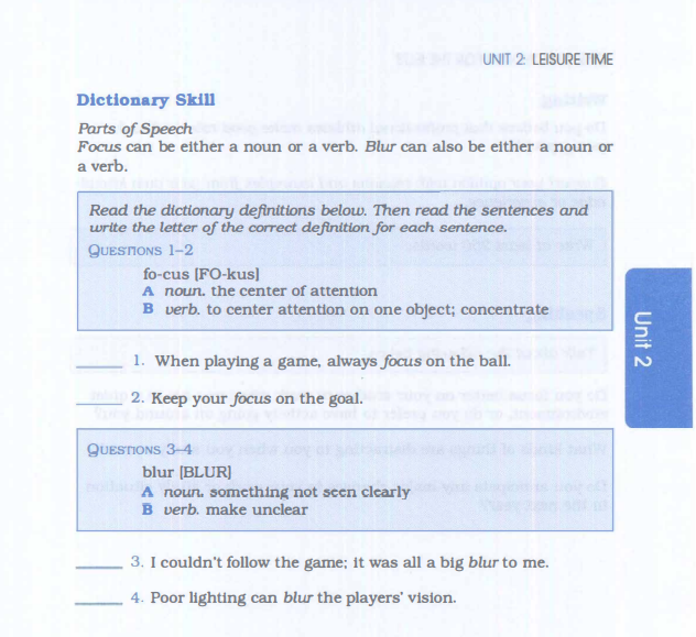 Afterwards, these vocabulary words will reappear in reading or listening passages (according to the unit's theme) and be highlighted.