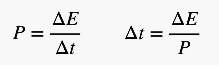 Nhưng còn về bánh mì kẹp? Nếu anh ấy chỉ ăn một bữa, thì anh ấy sẽ được khoảng 380 calo thức ăn, tương đương với 1,59 triệu joules. (Cả joule và calo đều là đơn vị năng lượng.) Vì vậy, tôi có công suất và tôi có năng lượng (ΔE). Tôi chỉ cần giải cho khoảng thời gian (Δt) bằng cách sử dụng định nghĩa của công suất:
