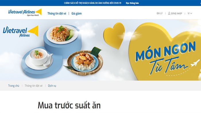 Hành khách có thể mua trước suất ăn qua trang web của Vietravel Airlines