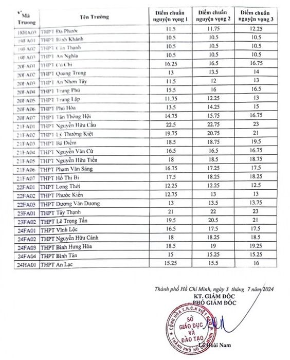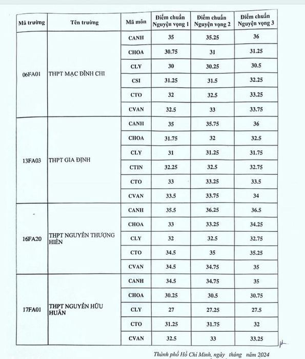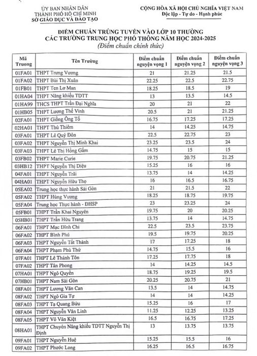 Điểm chuẩn vào lớp 10 các trường THPT năm 2024 tại TP.HCM (trang 1)