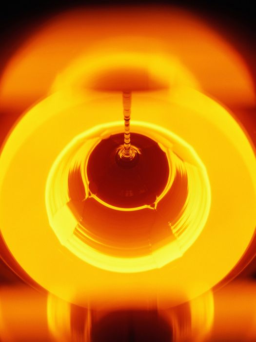 Bước tiếp theo là làm tan polysilicon. Nhưng bạn không thể chỉ đơn giản là ném vật liệu tinh khiết này vào một nồi nấu. Nếu silic nóng chảy tiếp xúc với thậm chí một lượng nhỏ nhất của chất sai, nó sẽ gây ra một phản ứng hóa học phá hủy. Bạn cần có lọ nung được làm từ một chất duy nhất có sức mạnh chịu được nhiệt độ cần thiết để nung polysilicon và có thành phần phân tử không làm nhiễm bệnh nó. Chất đó là thạch anh tinh khiết.